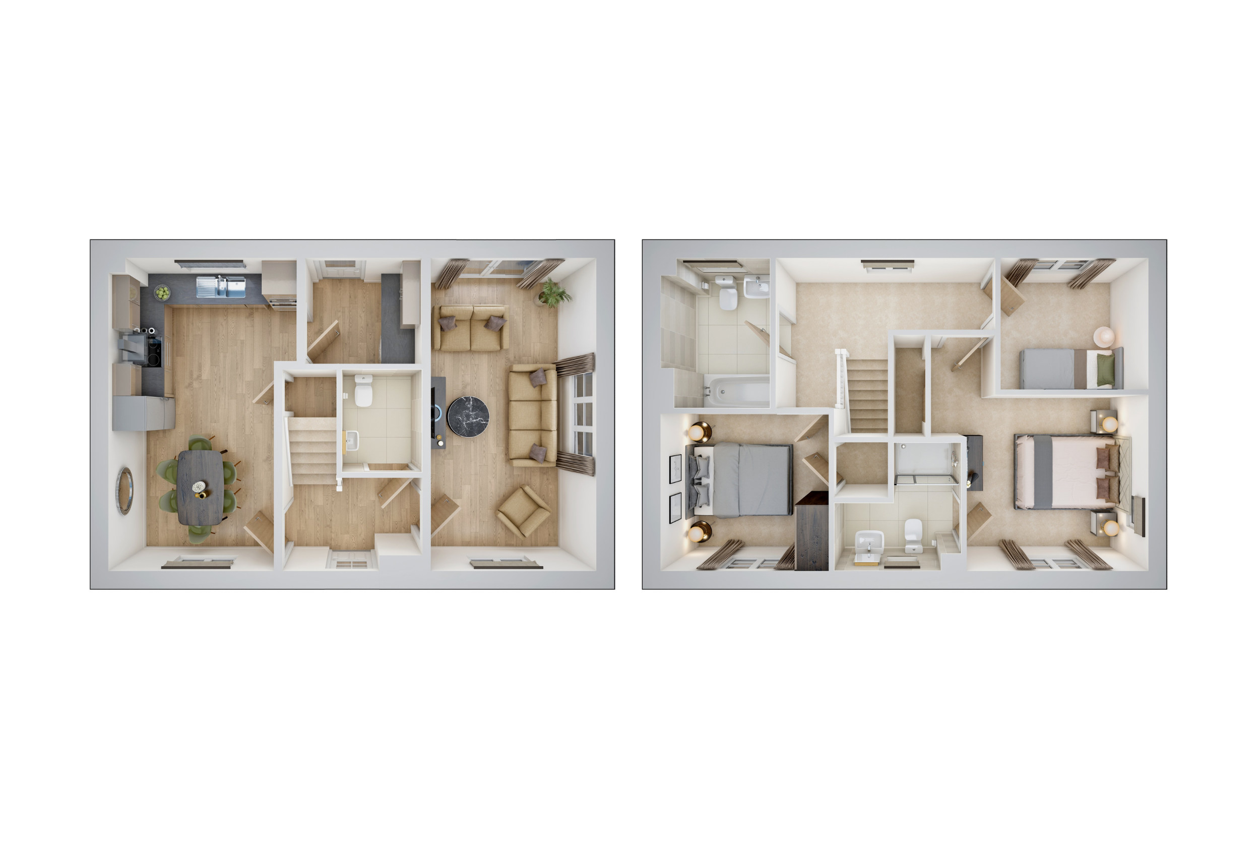 The Holly Special, set on a desirable corner plot, welcomes you into a bright entrance hall with a convenient WC. To the left, a spacious open-plan kitchen/dining room leads to a separate utility room with outdoor access. On the right, a generous front-aspect living room stretches the length of the home, with French doors opening to the rear garden. Upstairs, bedroom one enjoys a private en-suite, while a second double and a flexible single bedroom share a contemporary family bathroom. This home also benefits from two parking spaces.