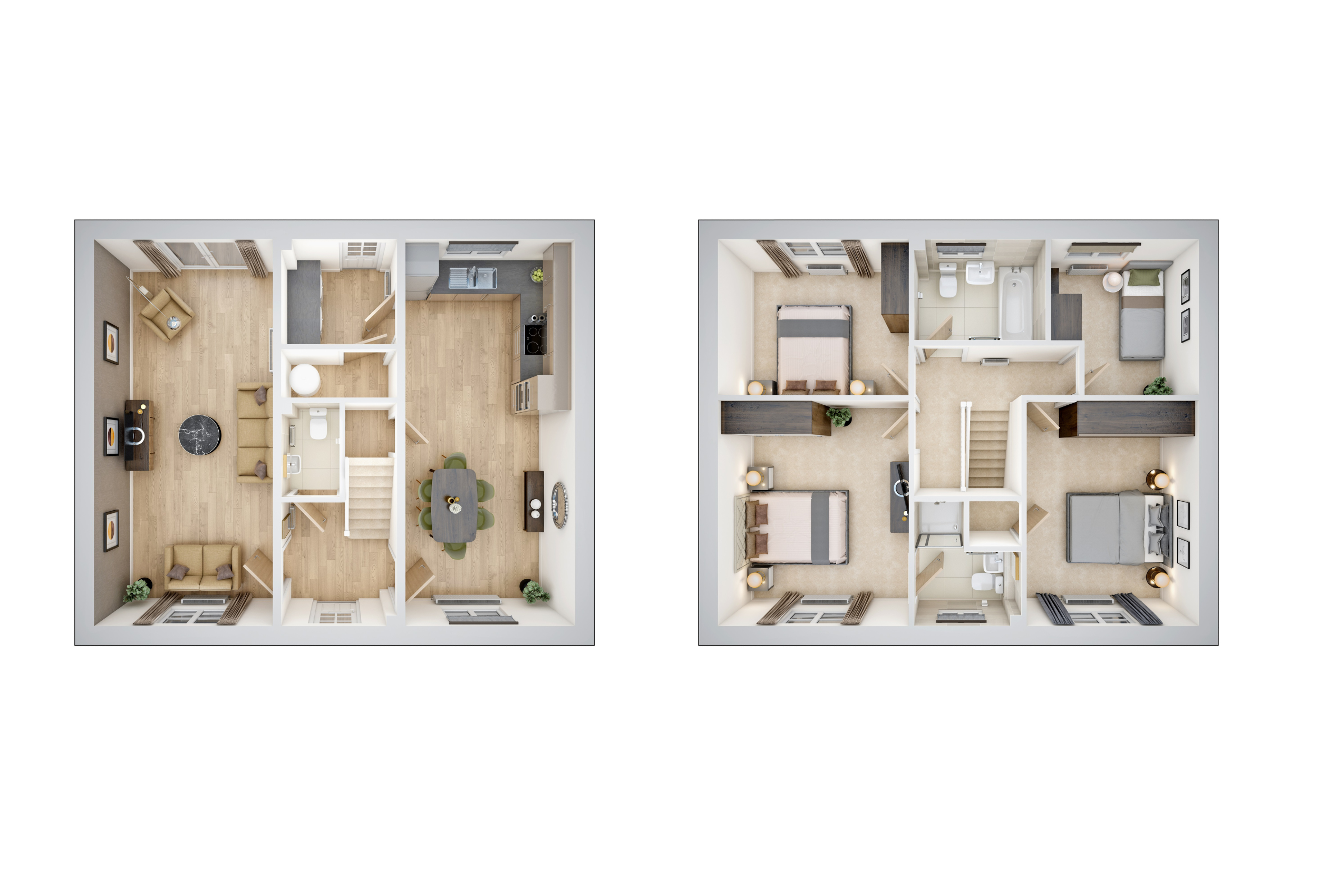 The Winsford is a double-fronted home featuring a lounge with French doors to a rear garden, a double-aspect kitchen/dining room, four bedrooms including an en-suite to bedroom one.