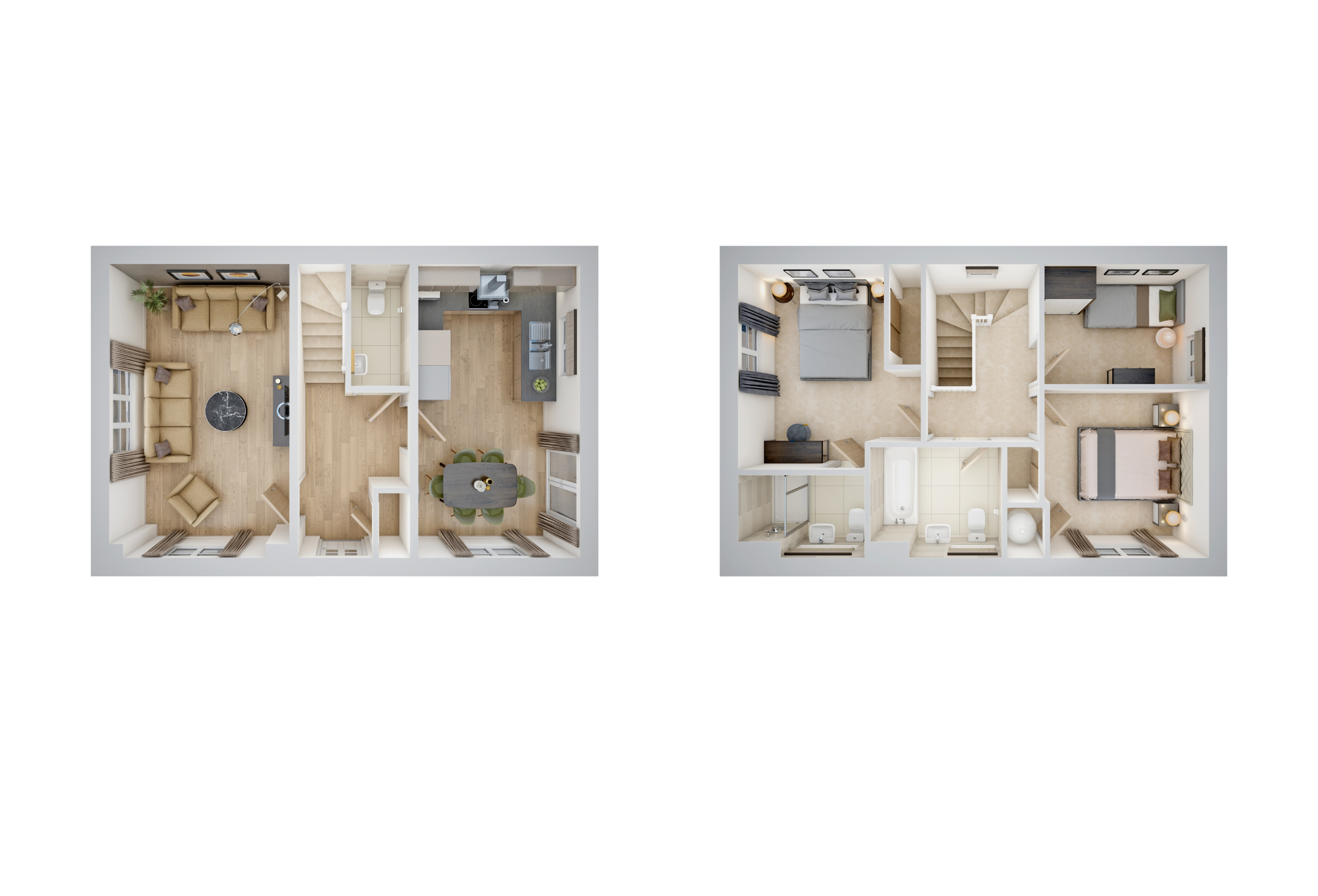 The Holly Special welcomes you into a bright and spacious entrance hall with access to a convenient downstairs WC. To the left, a generous dual-aspect living room provides the perfect space for both entertaining and relaxation. On the right, a stylish open-plan kitchen/dining area extends to the rear garden through French doors, offering a bright and airy atmosphere. Upstairs, bedroom one features fitted wardrobes and a private en-suite shower room, while a second double bedroom and a flexible single bedroom are served by a large contemporary family bathroom. This home benefits from two parking spaces.