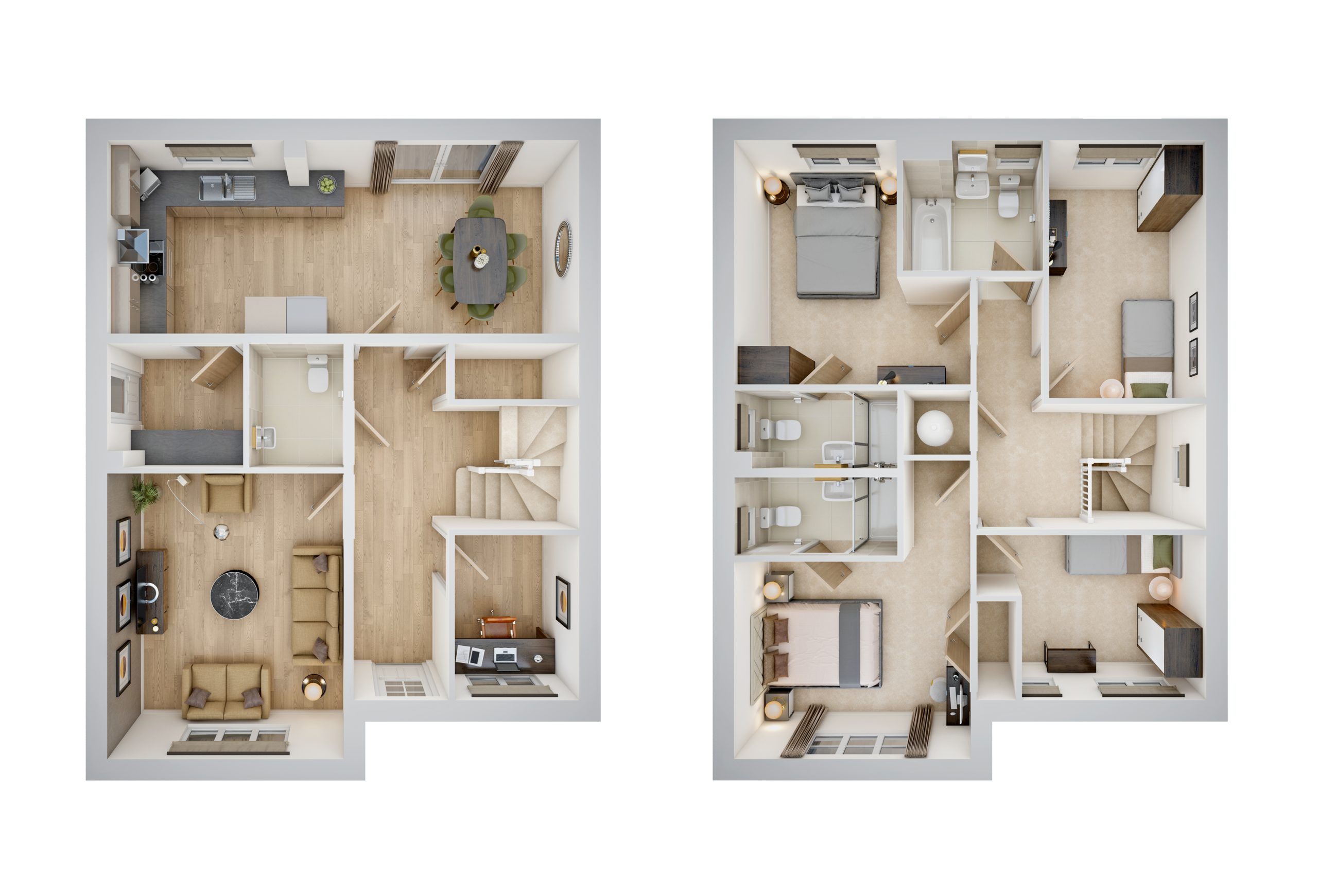The Oakham offers generous living space and thoughtful design, perfect for modern family living. A spacious entrance hall leads to a large, light-filled living room at the front of the home. To the left, a stylish open-plan kitchen and dining area opens onto the garden through French doors. A dedicated utility room with outdoor access, a convenient downstairs WC, and additional storage add everyday practicality. Upstairs, a wide landing connects four well-sized bedrooms. Bedroom one features fitted wardrobes and a private en-suite.A sleek, contemporary family bathroom serves the remaining three bedrooms. This home also includes a single garage and two parking spaces.